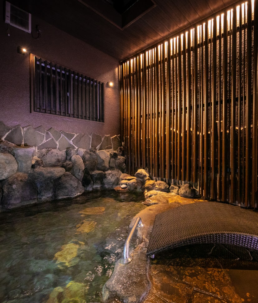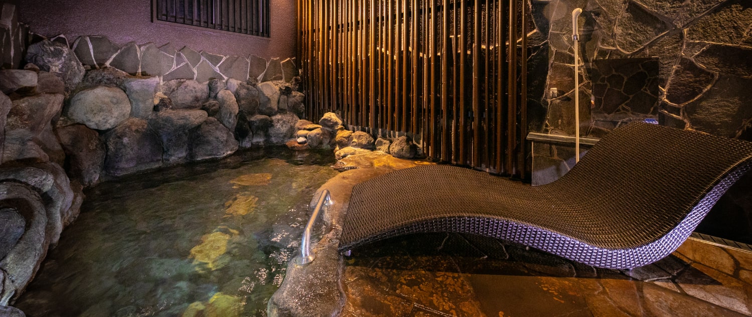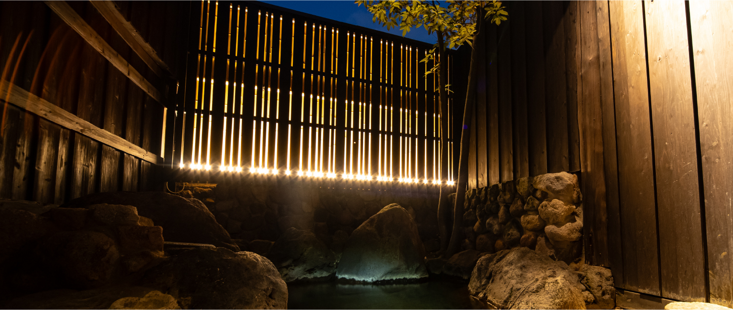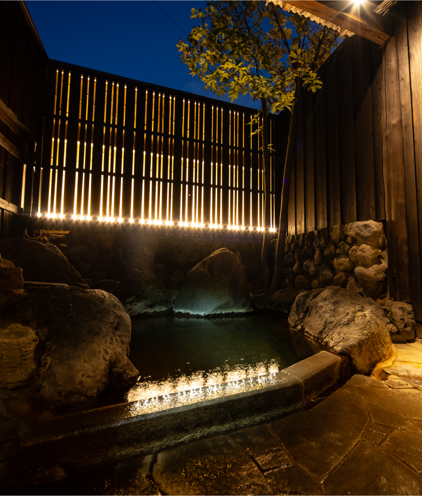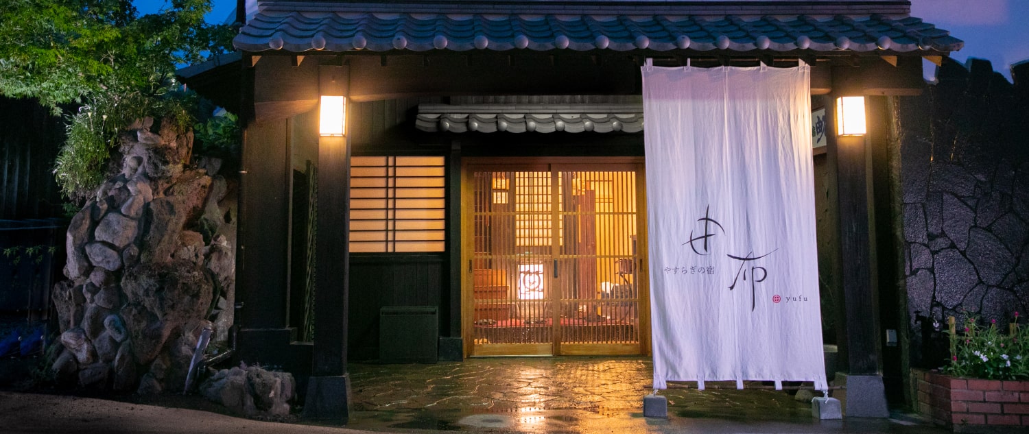 やすらぎの宿由布では、たっぷりの温泉を露天風呂2つ、内湯2つ計4つを貸切風呂として楽しめます。